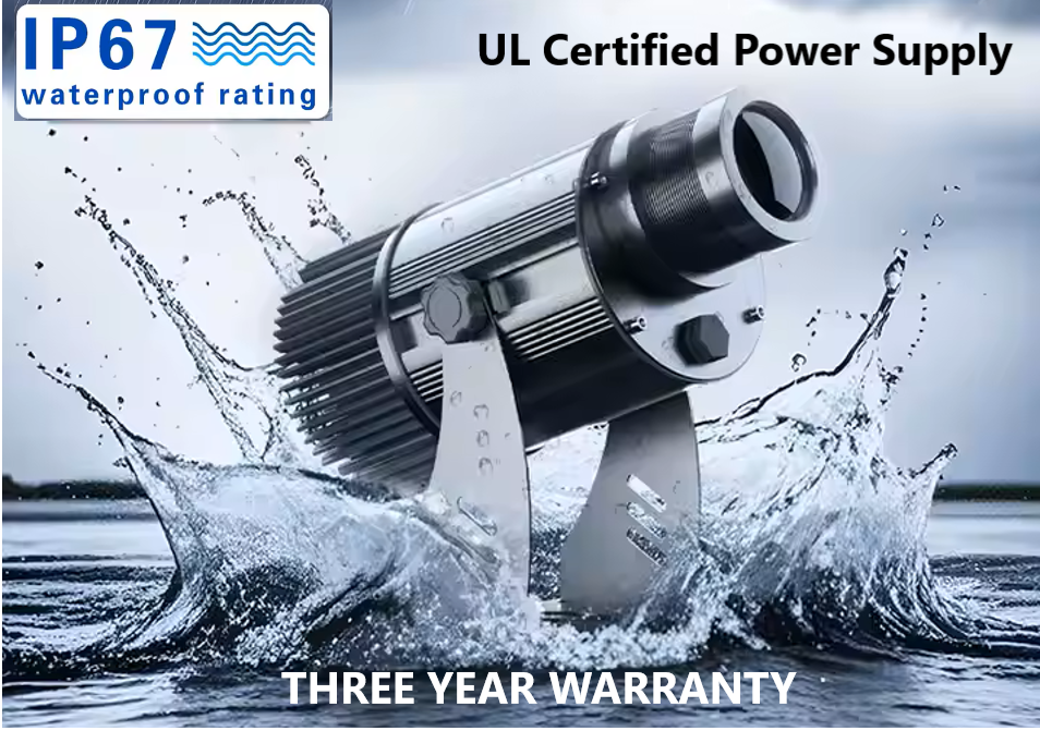 The OLPR-200 is a pro grade high quality gobo projector, featuring full color static or rotating display of your custom full color laser cut glass gobo. Just provide us your artwork and we create a laser cut glass gobo from your imagery, and send you a rendering for proofing. The OLPR-200 comes standard with a 0.3 lens, however there are additional lens options so you get the right size image at the projection distance of your application. Logo Light is the only gobo projector on the market with a 3 year warranty, UL certified power supplies, and pre sales design support, install support, and post sales maintenance and service. With twenty years in the business, you can count on our expertise, and we are based in the USA.